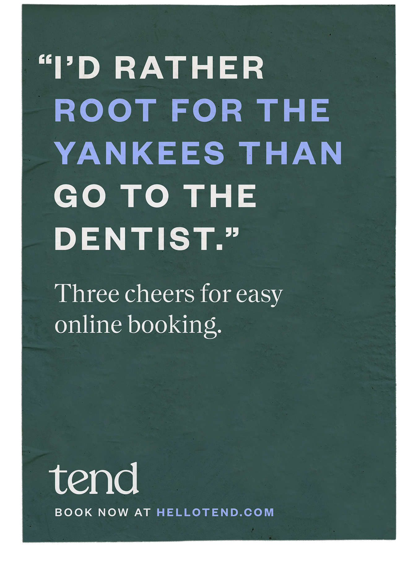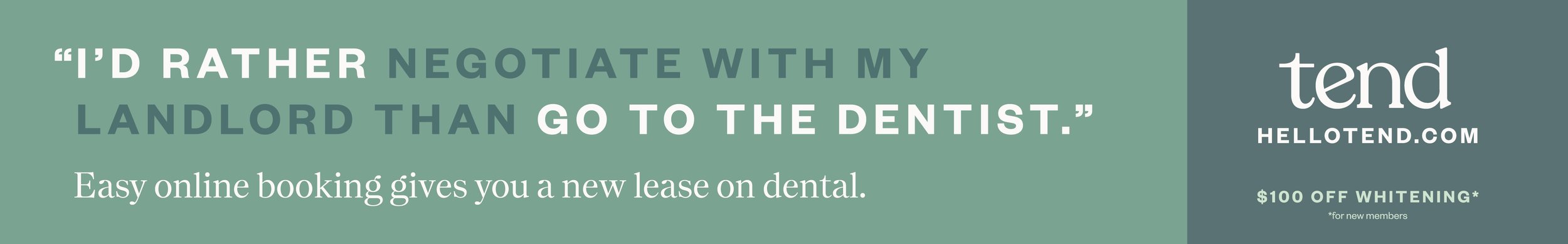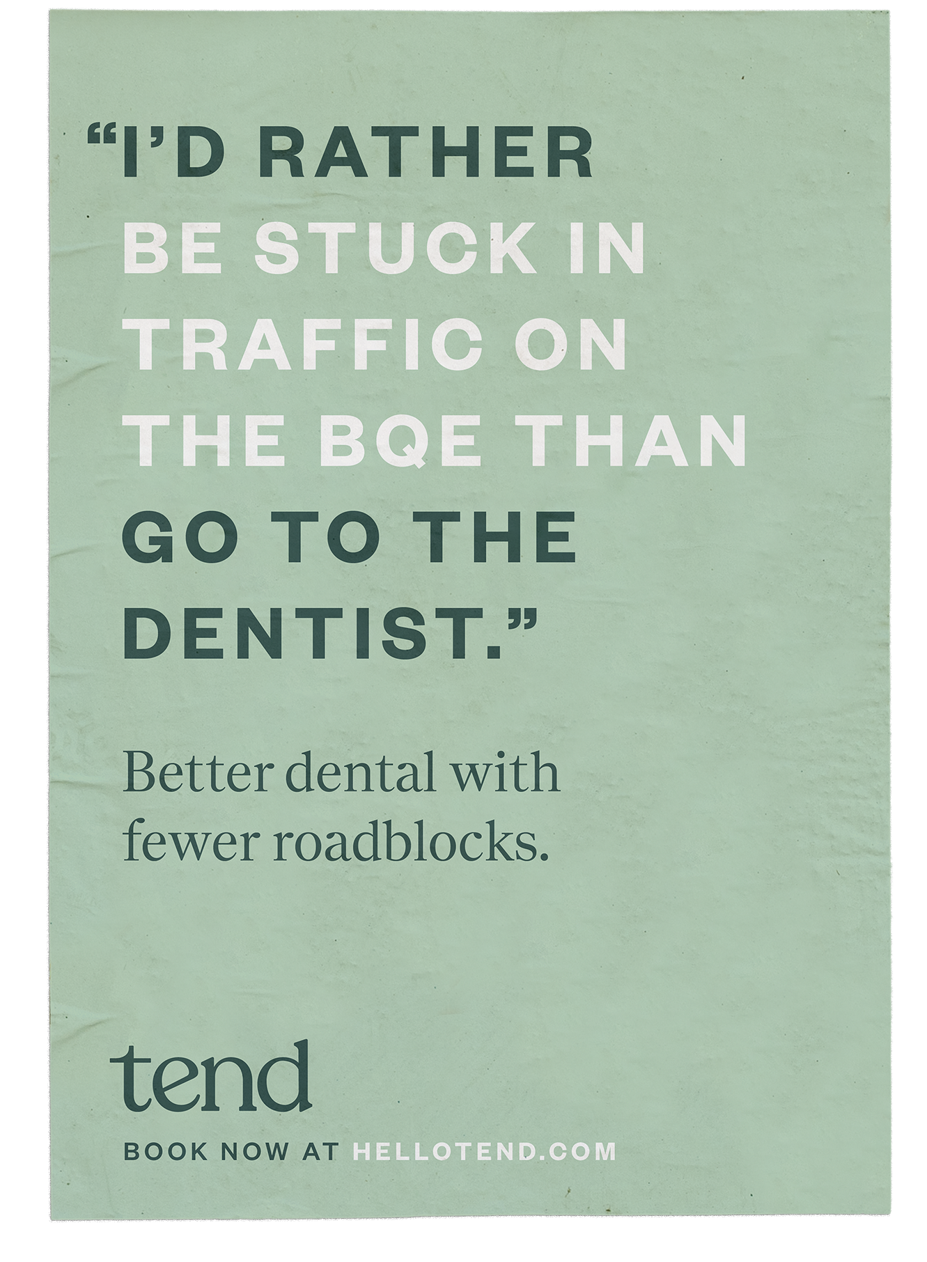 The campaign was built on a simple, relatable truth: most people would rather do almost anything than go to the dentist. until tend moves to the neighborhood, that is.